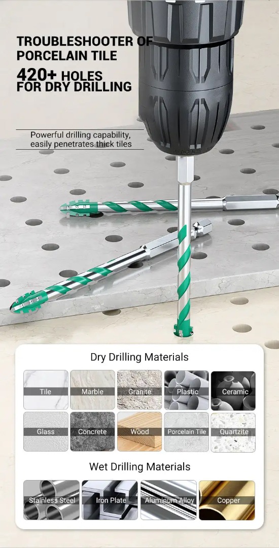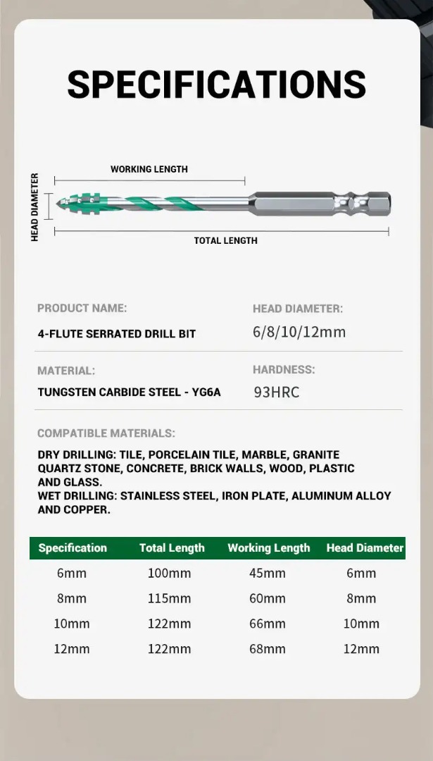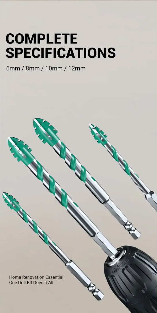 【6+8+10+12 mm】【10 KOM】Univerzalno svrdlo s 4 nazubljena ruba za otvaranje i proširenje rupa