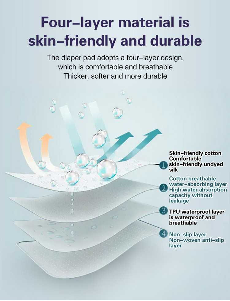 🛌 Prozračni, 4-slojni, perivi umetak za pelene za odrasle
