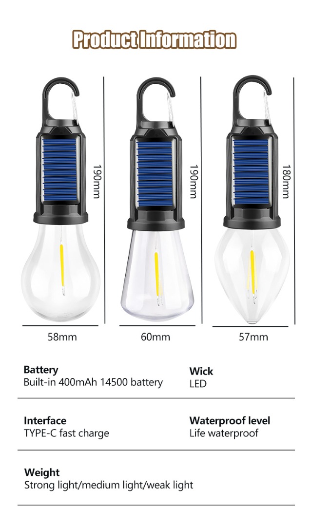Nova solarna punjiva kamperska svjetiljka, višenamjenska prijenosna atmosferska svjetiljka.