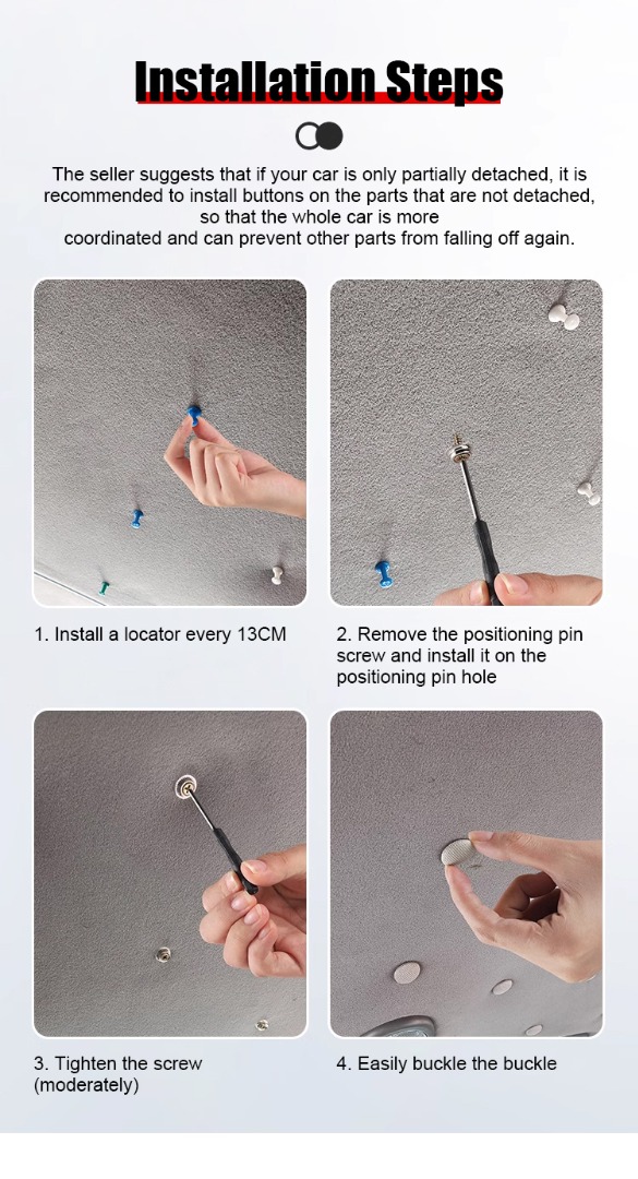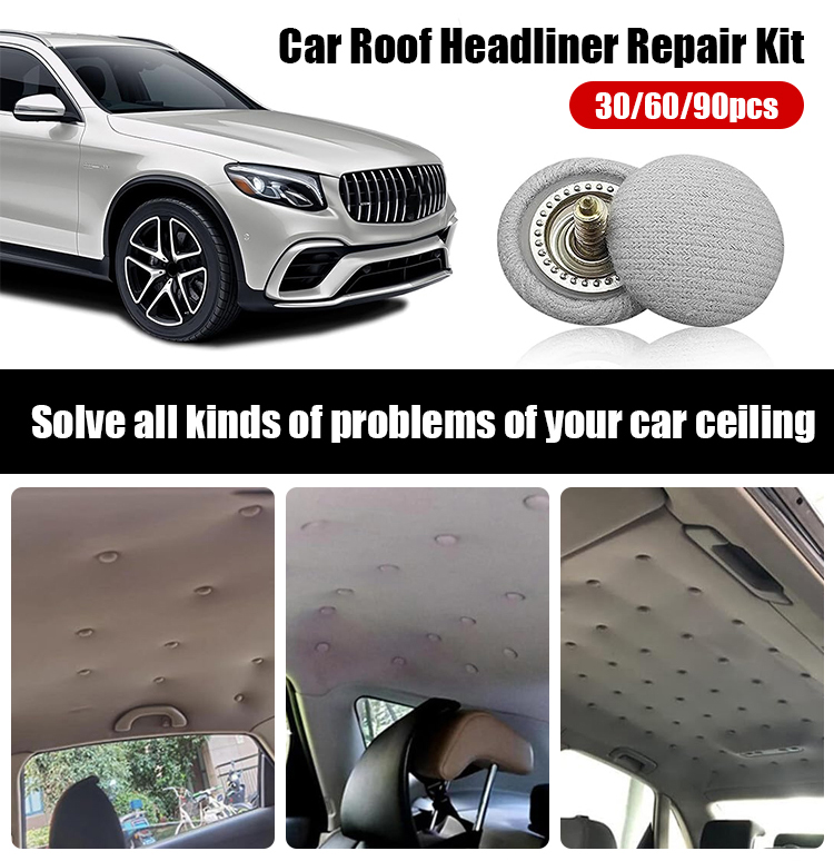 🚓Posebni čavli s platnenom kopčom za popravak pada krpe s krova automobila, baršunaste platnene kopče u kariranom uzorku za preinaku i obnovu interijera, uz besplatne alate za montažu