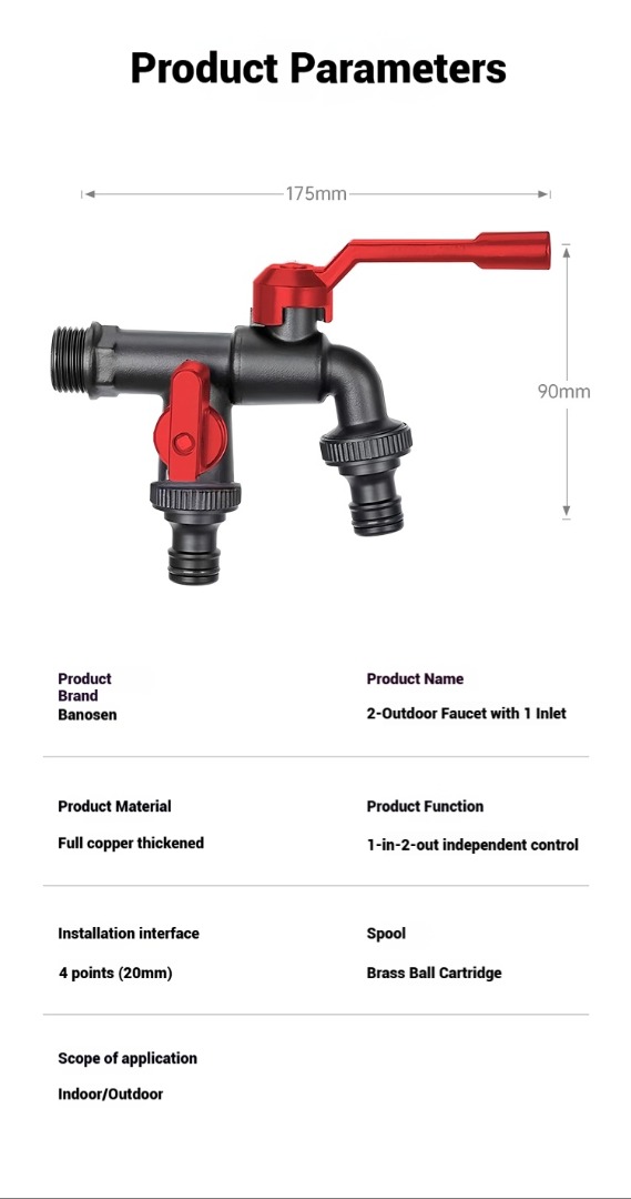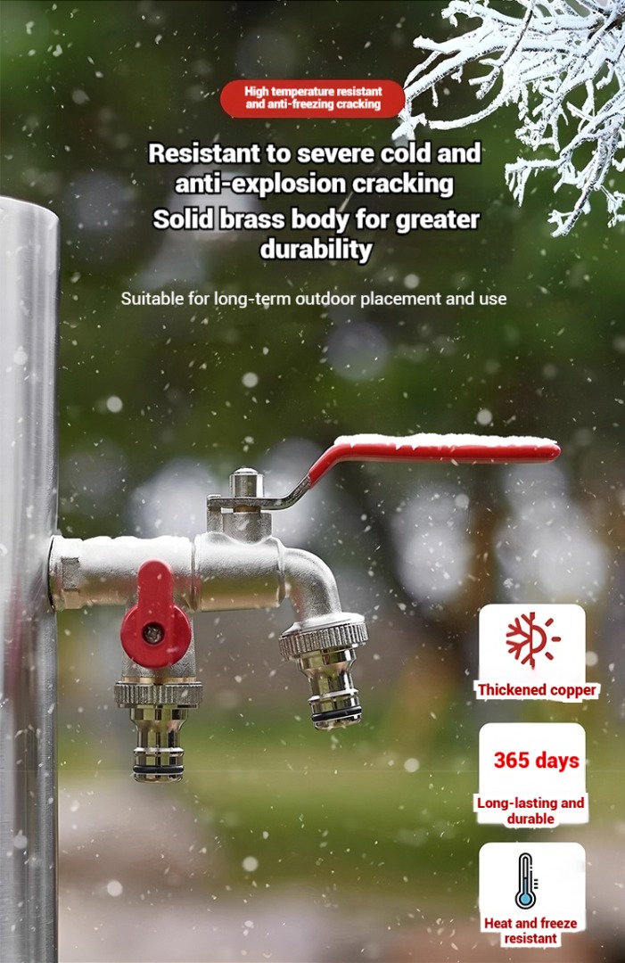 🏠❄️Zimska slavina protiv smrzavanja, otporna na hladnoću do -30°, s jednim ulazom i dva izlaza, dostupna za unutarnju i vanjsku upotrebu