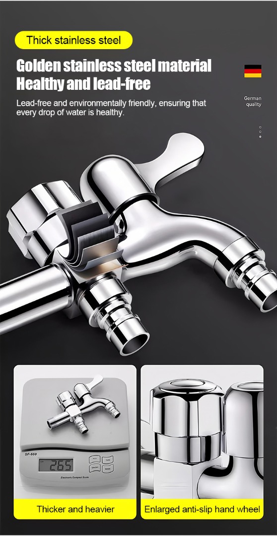 Kućna slavina od nehrđajućeg čelika 304 s jednim ulazom i dva izlaza