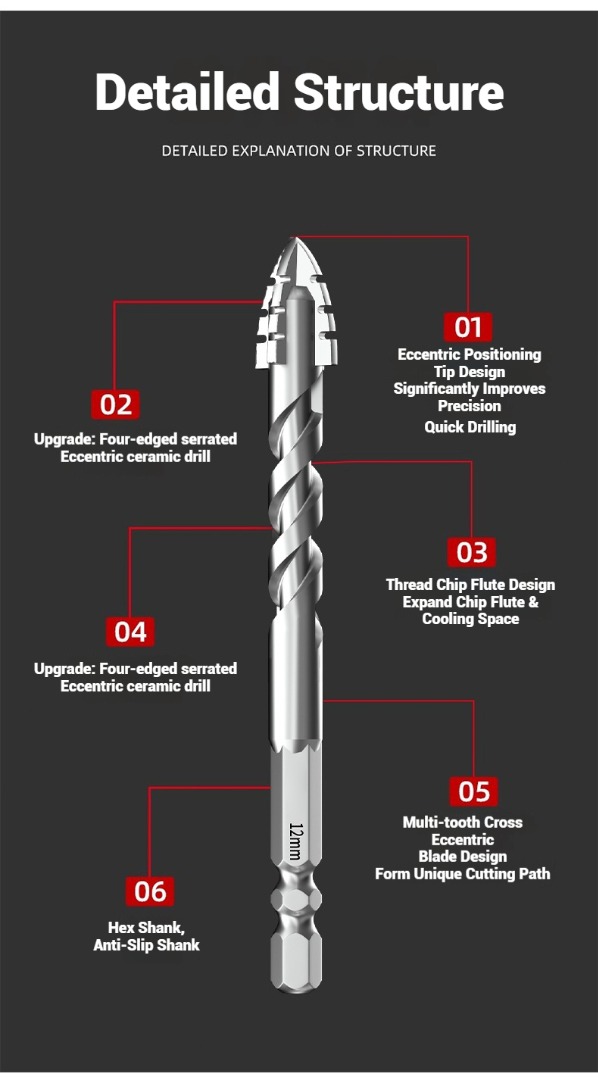 【3+4+5+6+8+10+12+14+16mm】Poboljšano ekscentrično svrdlo od super tvrdog volframovog čelika sedme generacije s nazubljenjem