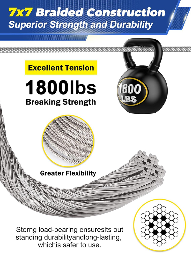 Produžni kabel za povlačenje od nehrđajućeg čelika 304 za vanjsku upotrebu [uključuje kuku]