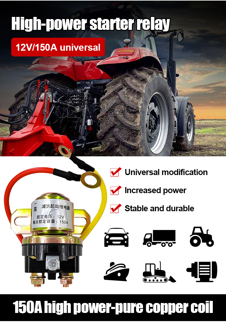 🚚Relej za pokretanje motora 12V/24V, pogodan za automobile, poljoprivredna vozila itd.